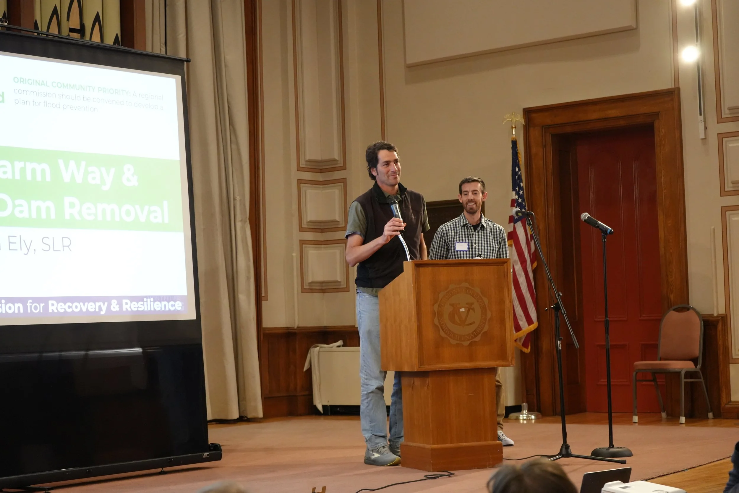 Thanks to all who joined us for an event to mark our two years of progress. Over 100 community members joined us at College Hall at Greenway Institute for a shared meal, music, conversation, and a presentation about MCRR’s projects and Montpelier’s path ahead. Click below for a recording or a copy of our final report. And be sure to check out the pictures!